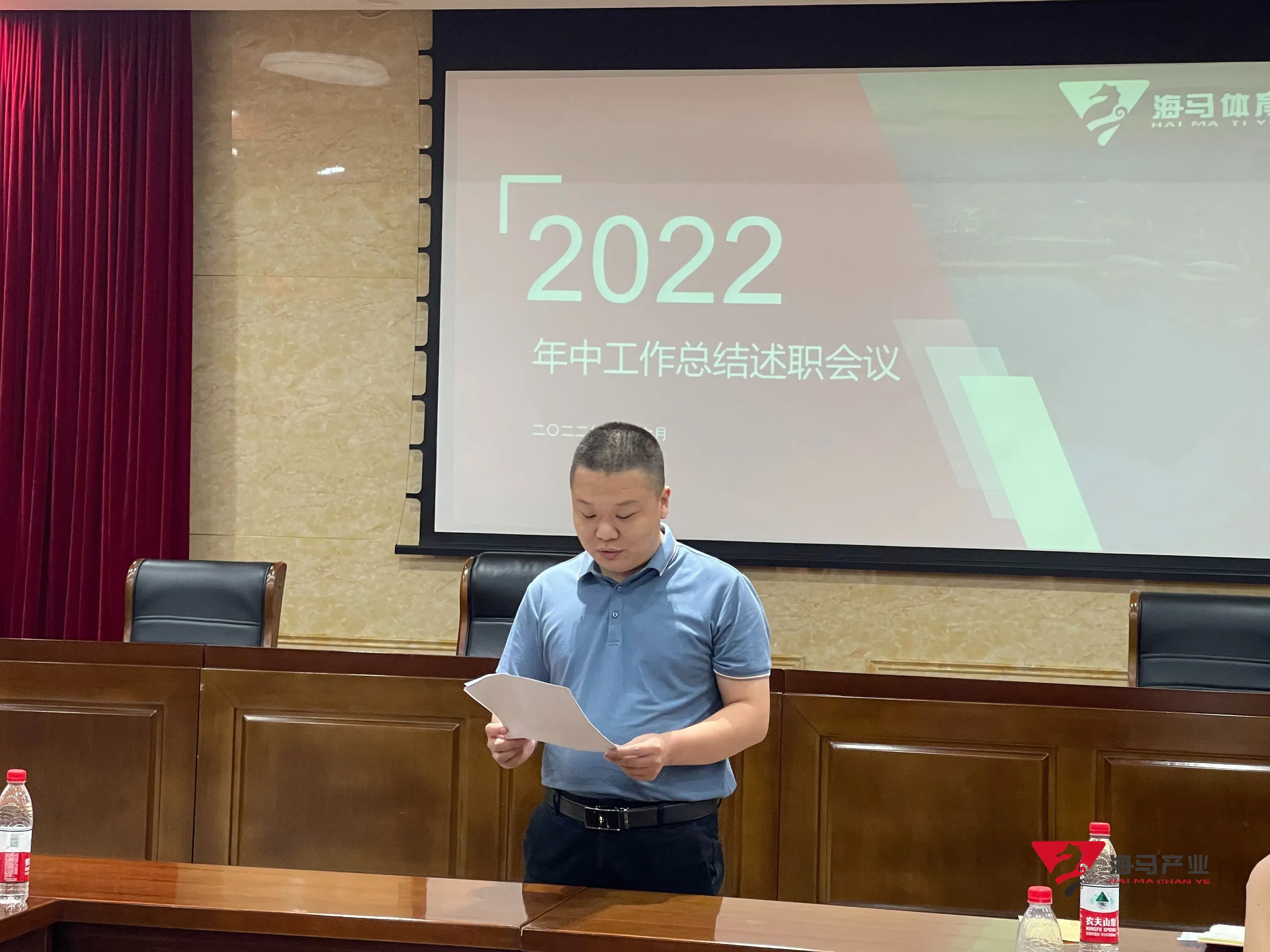 2022年6月29日下午,威廉希尔文化产业集团在山东省体育中心二楼会议室召开年中工作总结述职会议,会议对上半年工作成果进行了总结汇报,并就下半年重点工作进行部署。总经理王海民出席了本次会议。会议由综合管理部负责人王永健主持。